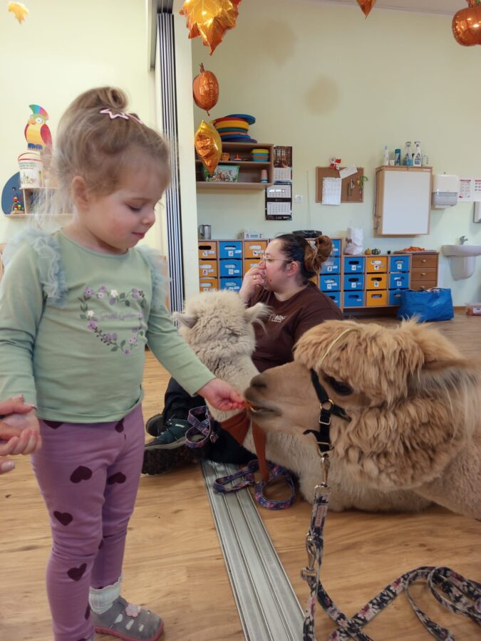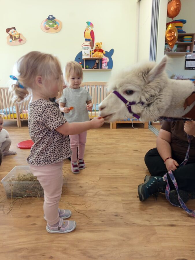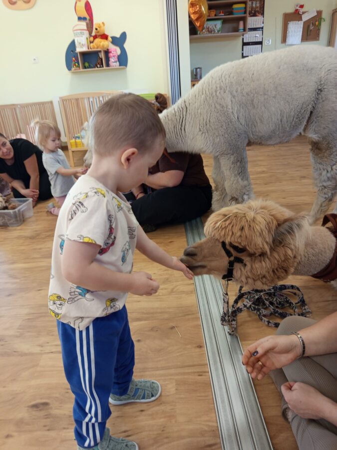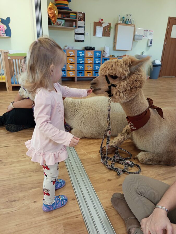 Dzieci miały możliwość poznania zwierząt jakimi są Alpaki, pogłaskania oraz karmienia marchewką. Był to wspaniały i ciekawy dzień 🙂
