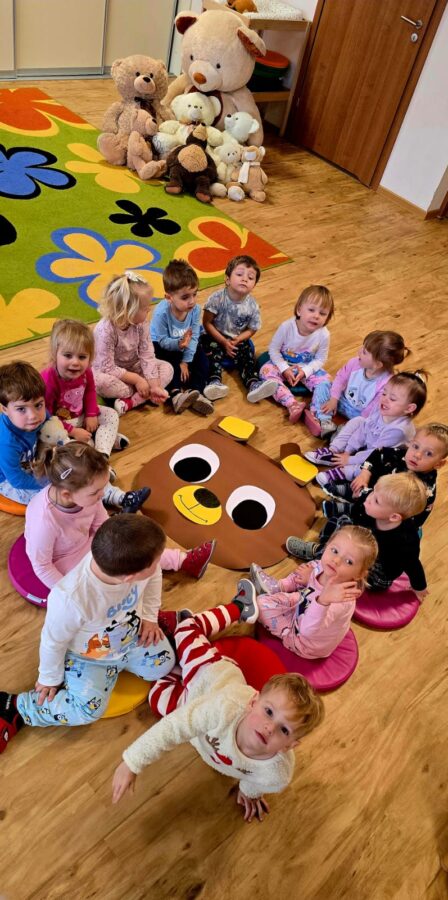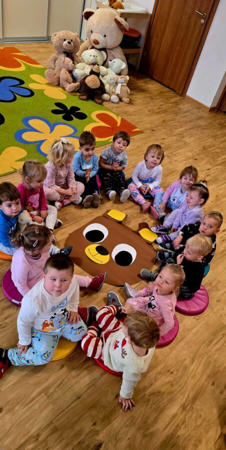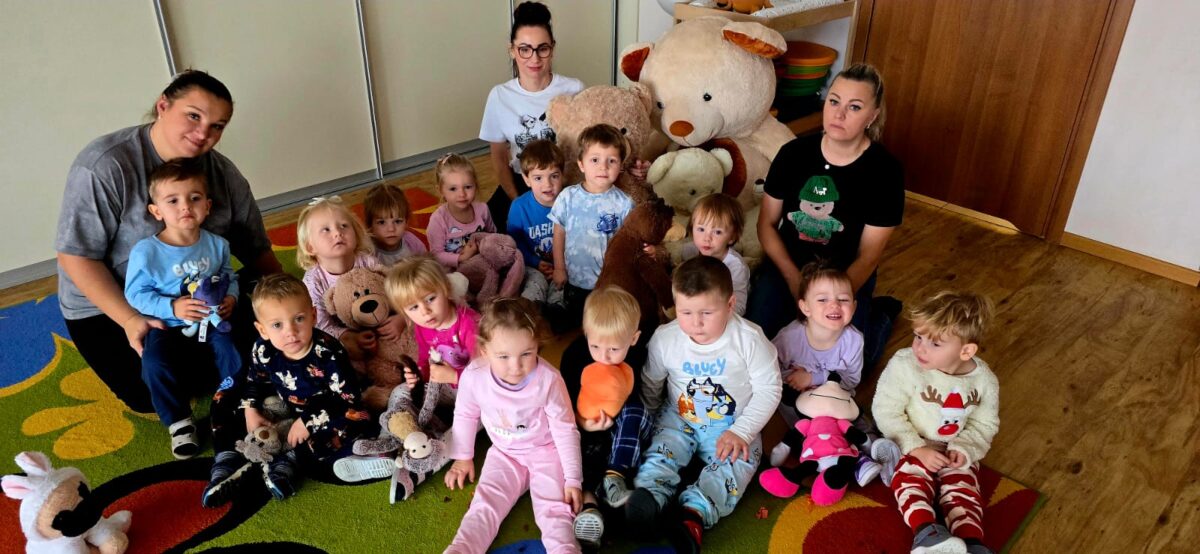 Dziś maluszki przyszły ubrane w piżamkach ze swoimi ulubionymi pluszakami aby wspólnie bawić się i cieszyć tym dniem.