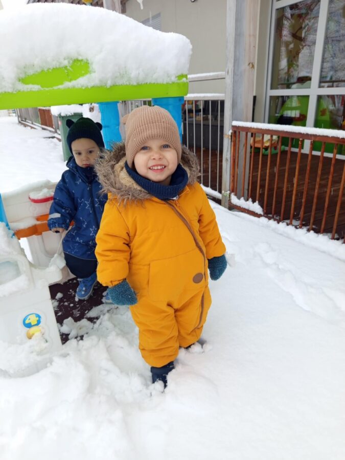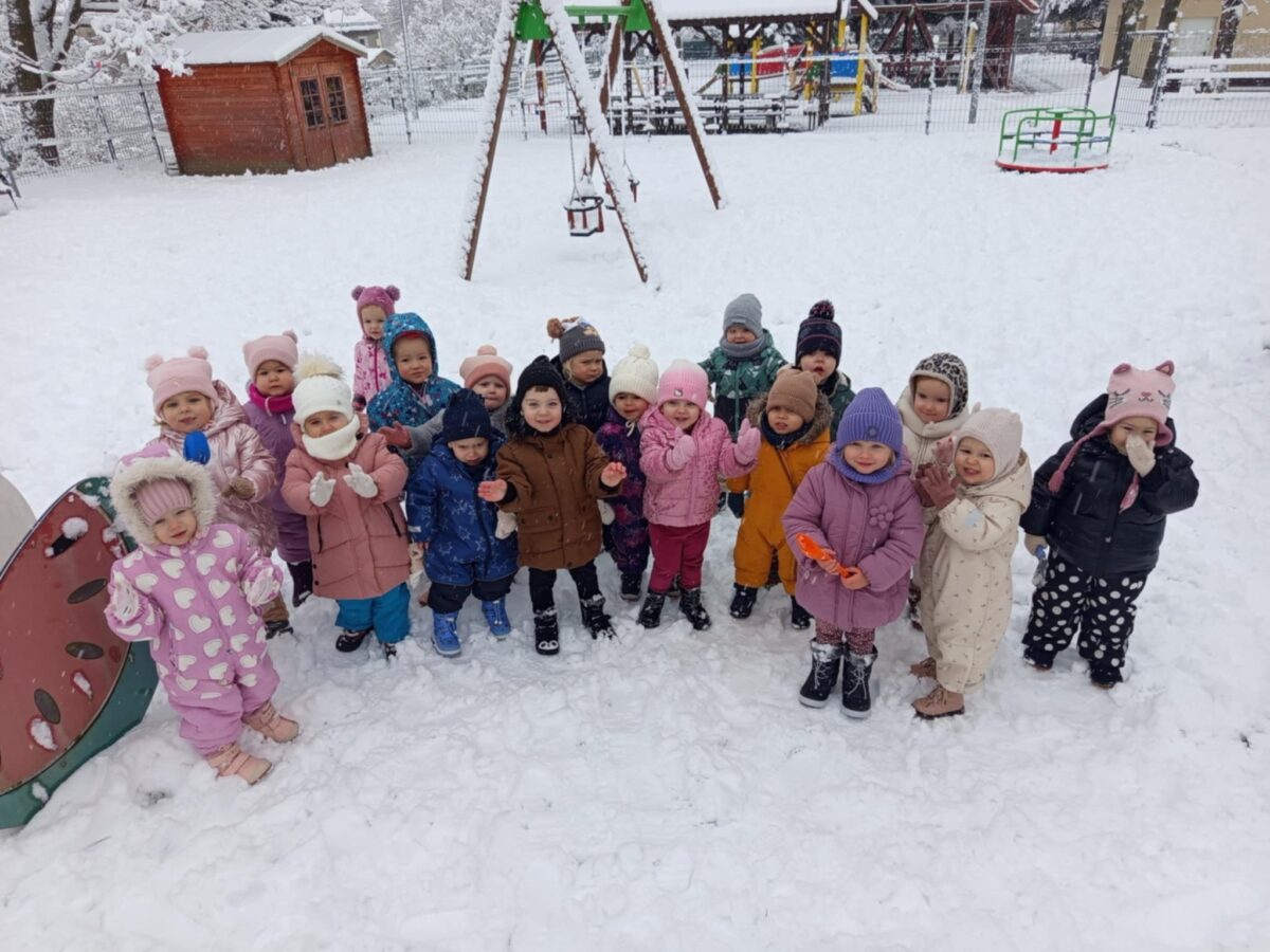 Śnieg z nieba leci, aby na żlobkowy ogród mogły wyjść dzieci…