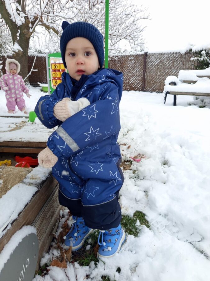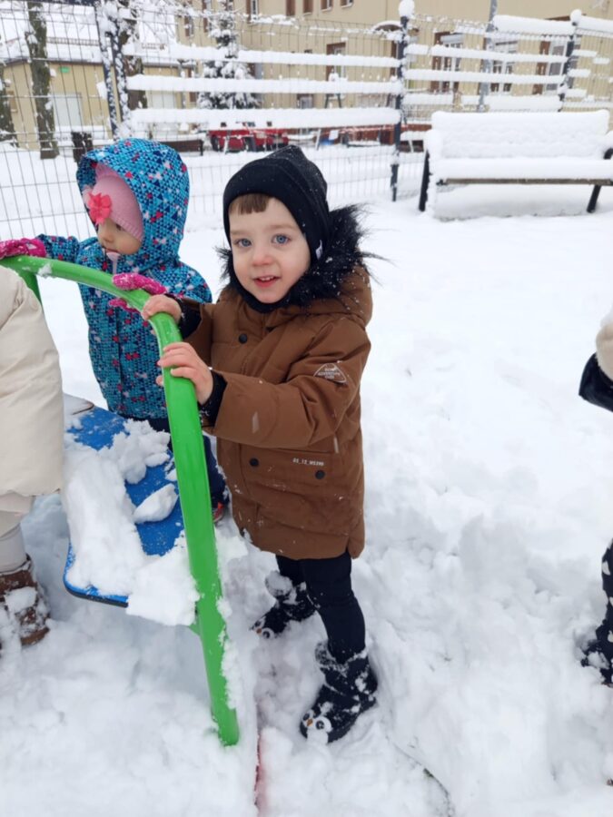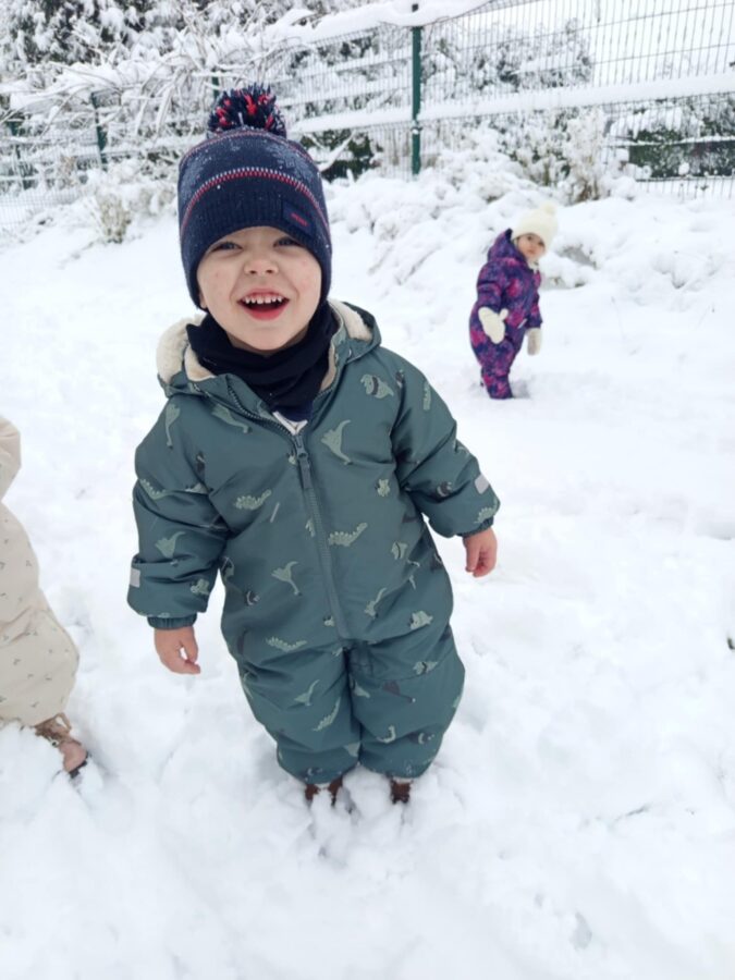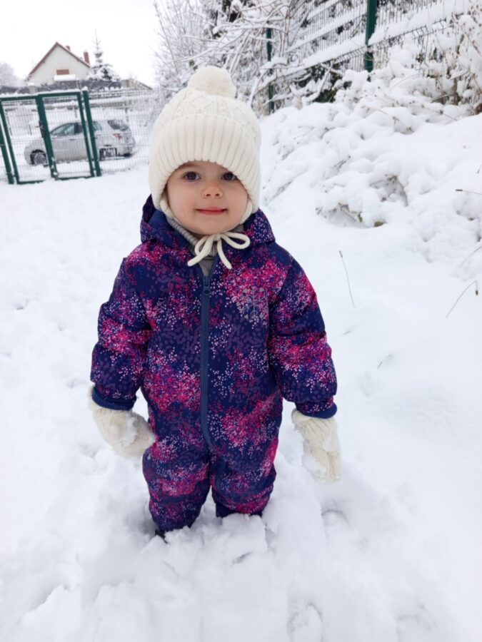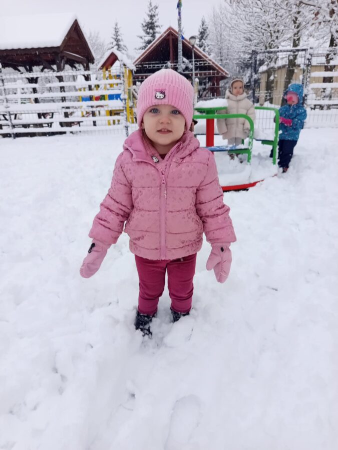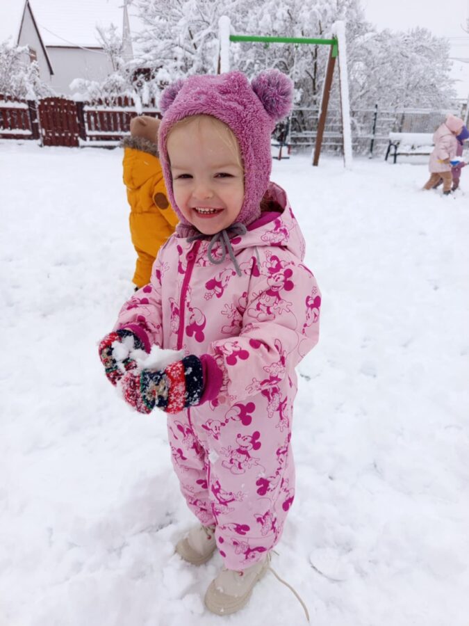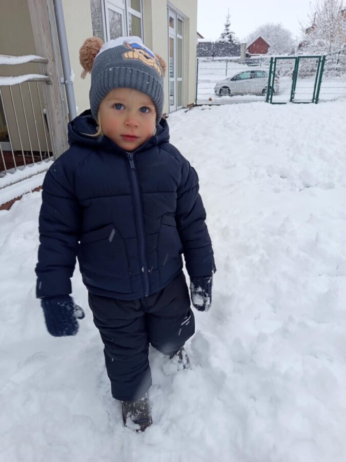 Dzieci się bardzo cieszyły że spadł śnieg. Pomimo czerwonych zmarzniętych nosków, humory dopisywały. Dzieci podziwiały świat spowity bielutkim śniegiem, spacerowały, dotykały śnieg, wydeptywały ślady na śniegu. Nie obyło się oczywiście bez lepienia śnieżek, które podrzucaliśmy wysoko w górę. ❄️❄️☃️⛄