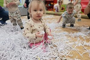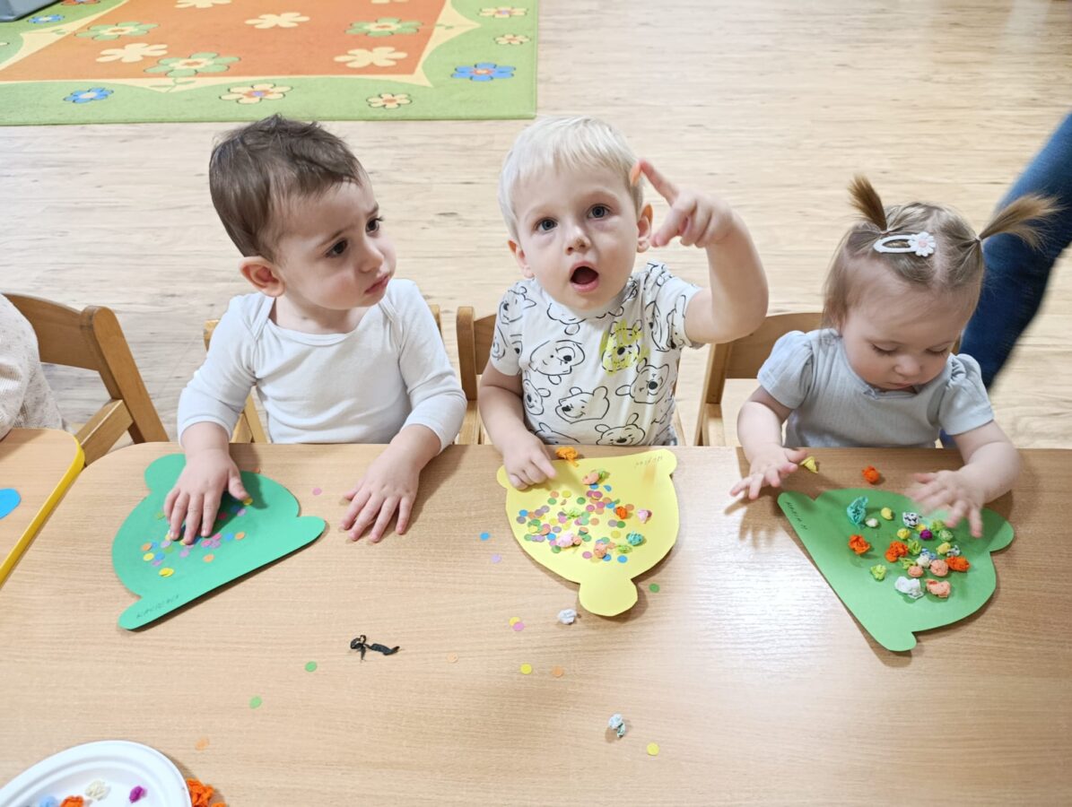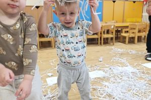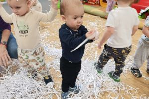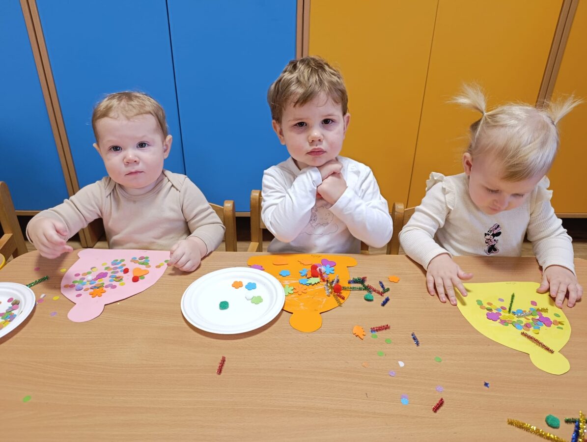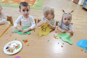 Zajęcia z motoryki dużej to aktywności ruchowe, które angażują duże grupy mięśni, rozwijają koordynację, równowagę i siłę. A przede wszystkim to po prostu świetna zabawa. Podczas zajęć dzieci tworzyły również kolorowe czapeczki. To radosne działanie wspierało rozwój motoryki małej, koordynację ręka-oko oraz poznawanie kolorów. Zajęcia sprzyjały także koncentracji, samodzielności i rozwijaniu zmysłu dotyku.